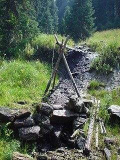 Buckhorn Creek and fording on a fallen tree to the meadow campsite I