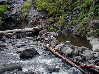 outflow of hot water coming from the hot springs source. The creek in-turn