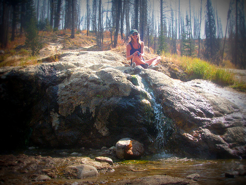 The water seemed hot enough, but we were in a rush to some other hot springs in the area so only a quick leg soak was in order during our visit. There was an outline of a