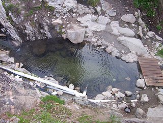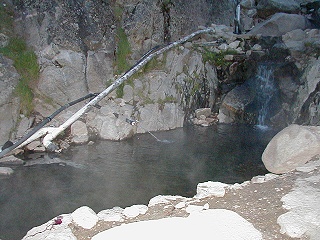 Skinnydipper. Hot water gushes out of the source into a chain of