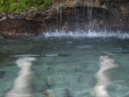 the hot waterfall that feeds the pool from above. Afterwards,